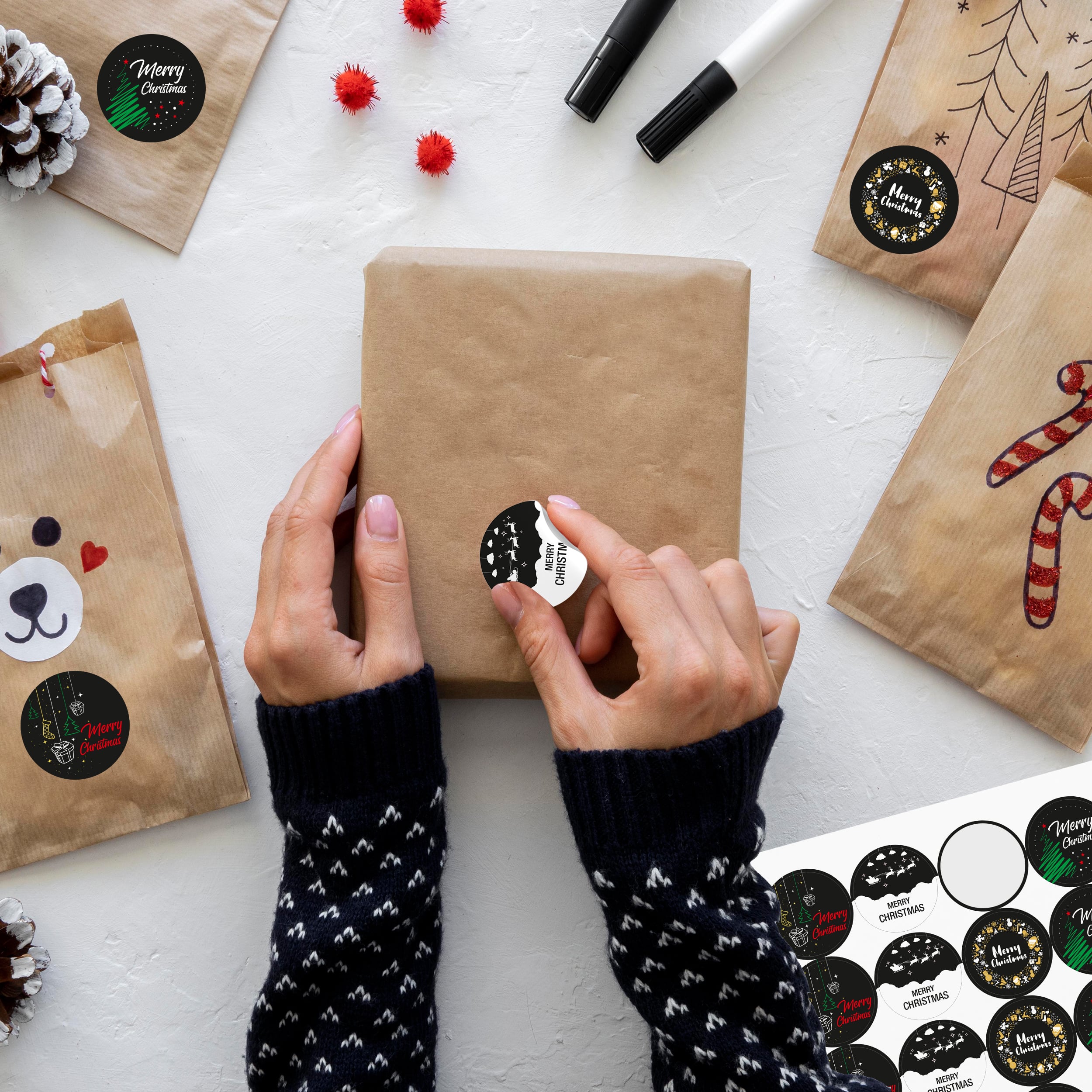 Ein Set Weihnachtsaufkleber beinhaltet 96 Sticker zum Aufkleben auf Geschenke, Grußkarten, Pakete und vieles mehr.