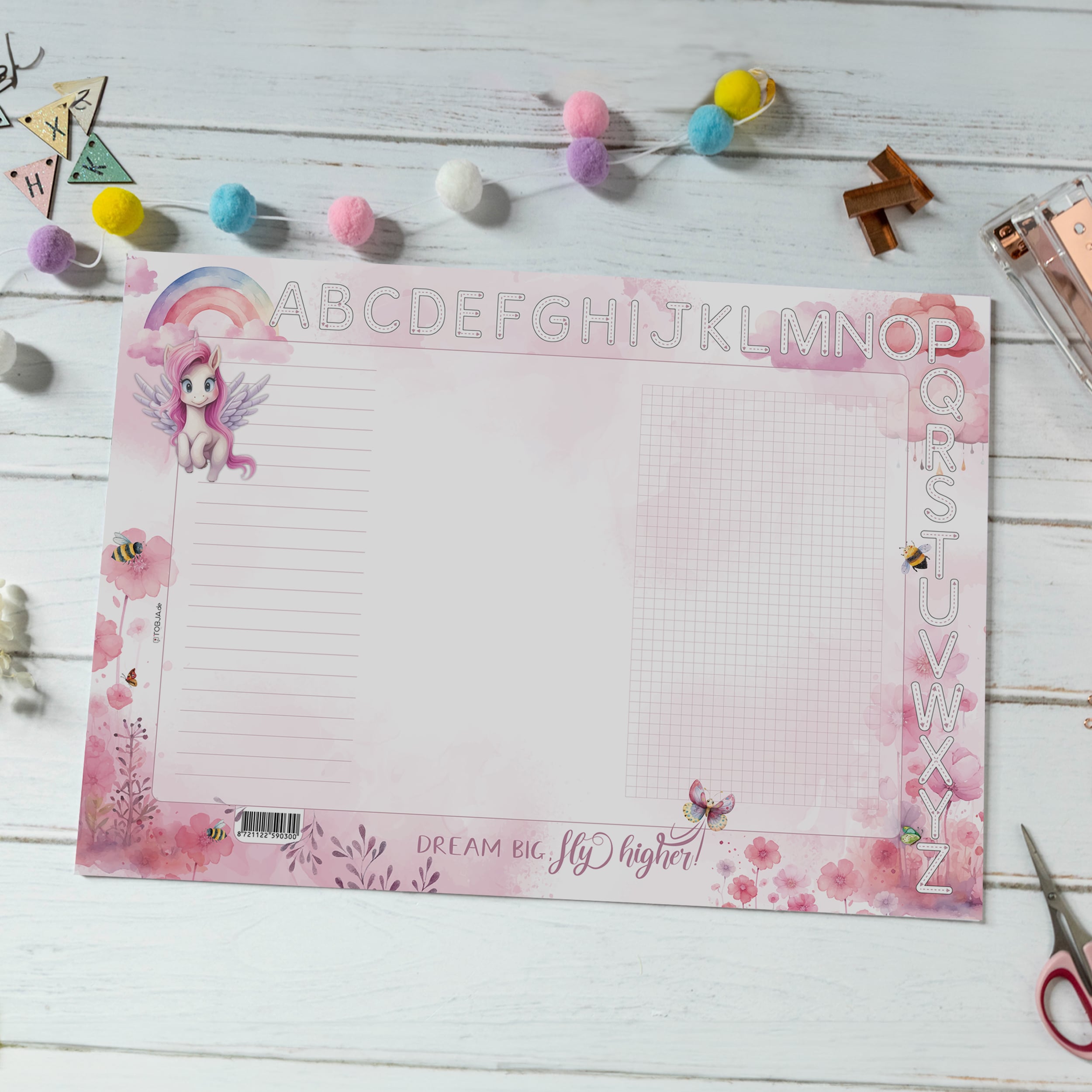 Entdecke unsere zauberhafte Alicorn-Schreibtischunterlage, die perfekt für den Schreibtisch deines Kindes ist!