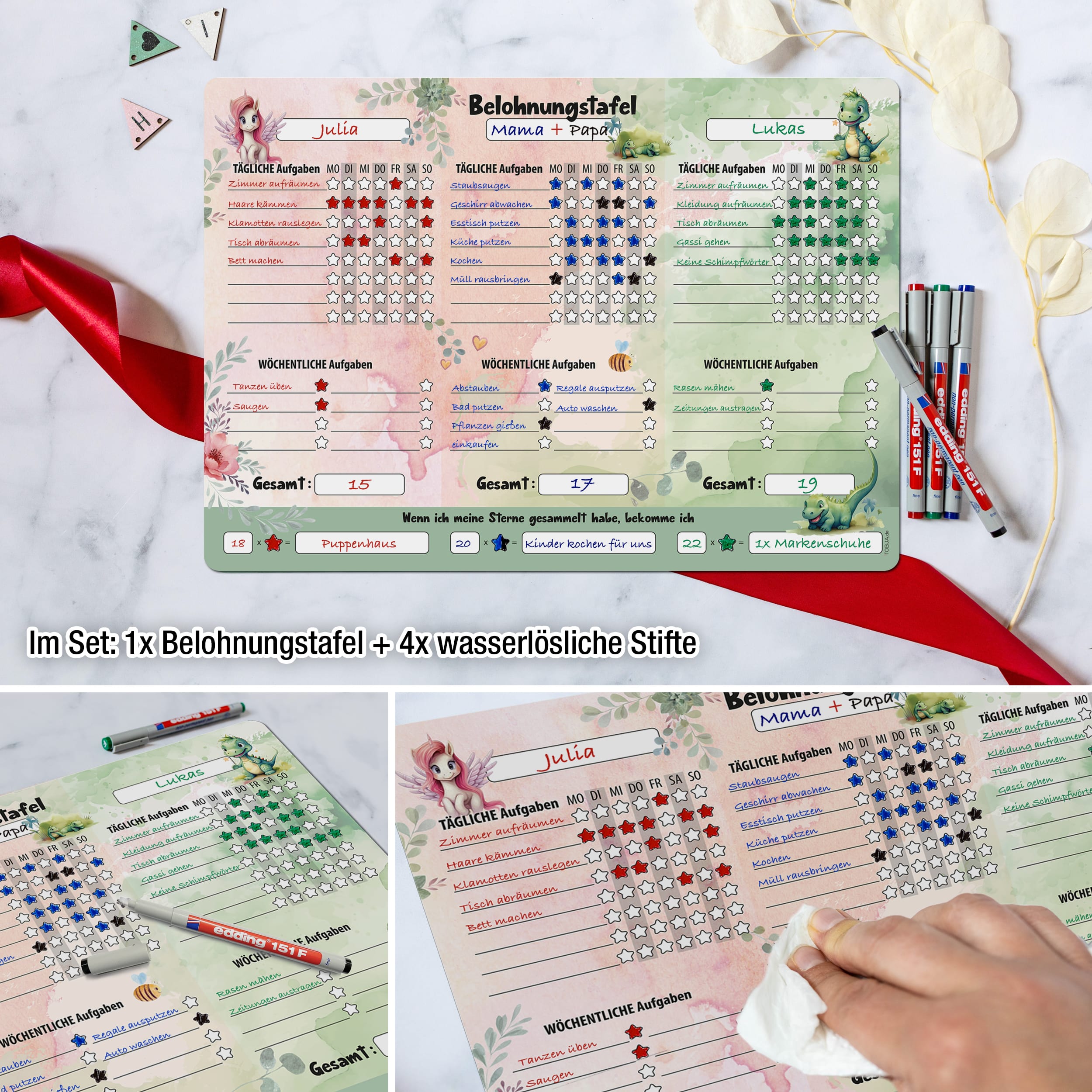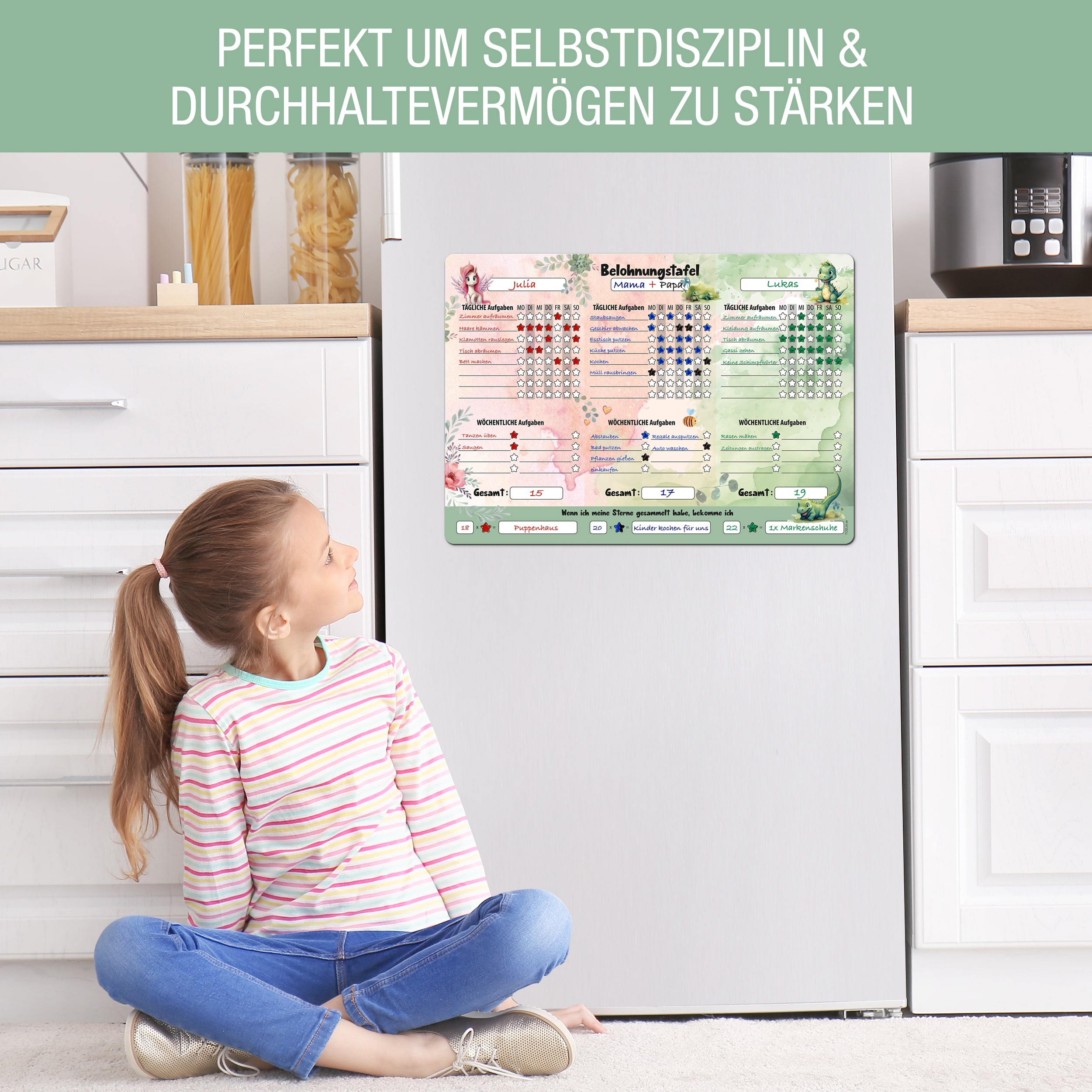Egal, ob dein Kind 2 oder 10 Jahre alt ist, diese Belohnungstafel passt perfekt zu jeder Altersgruppe. Sie ist ideal für Familien mit bis zu 3 Kindern und bietet eine altersgerechte Möglichkeit, positive Verhaltensweisen zu fördern.