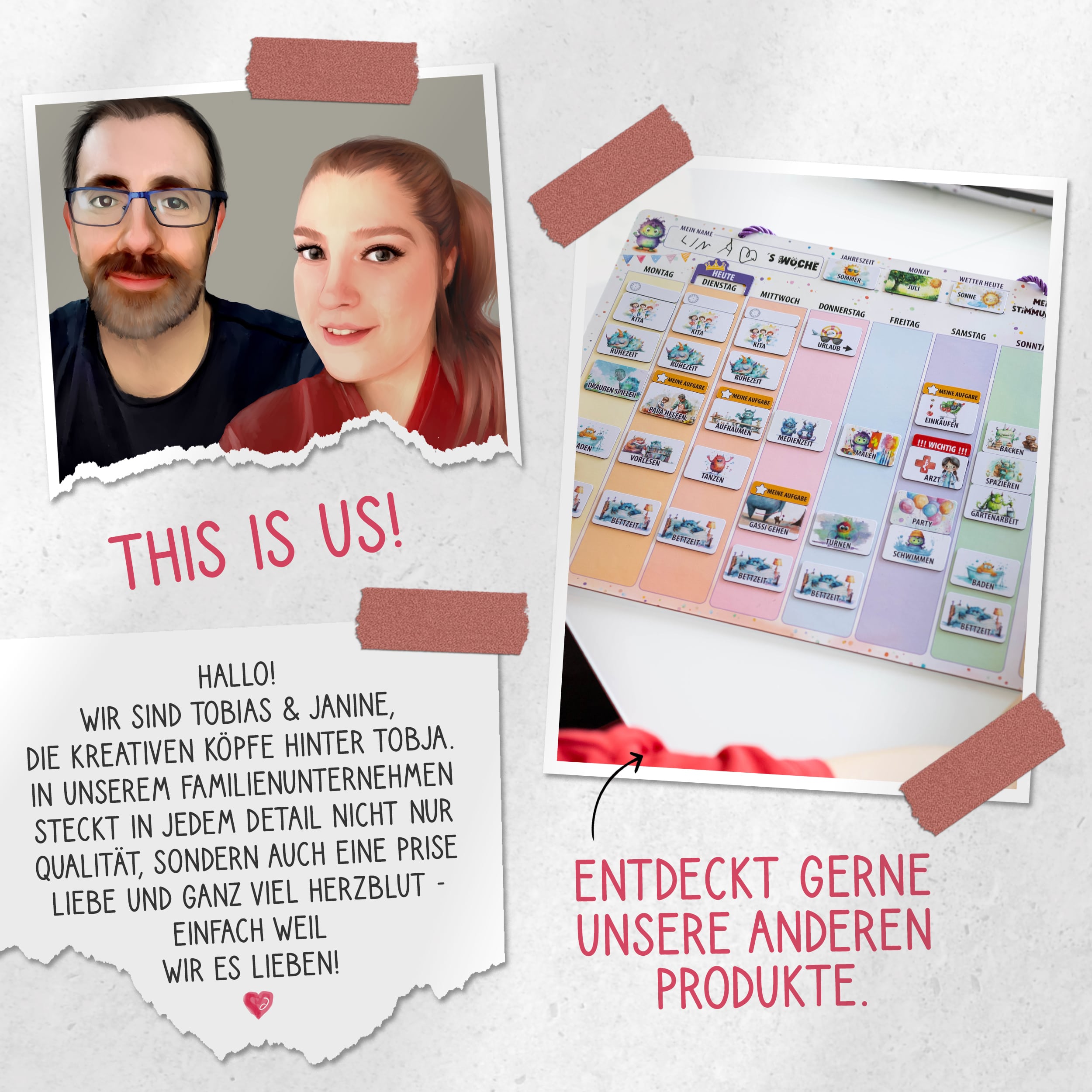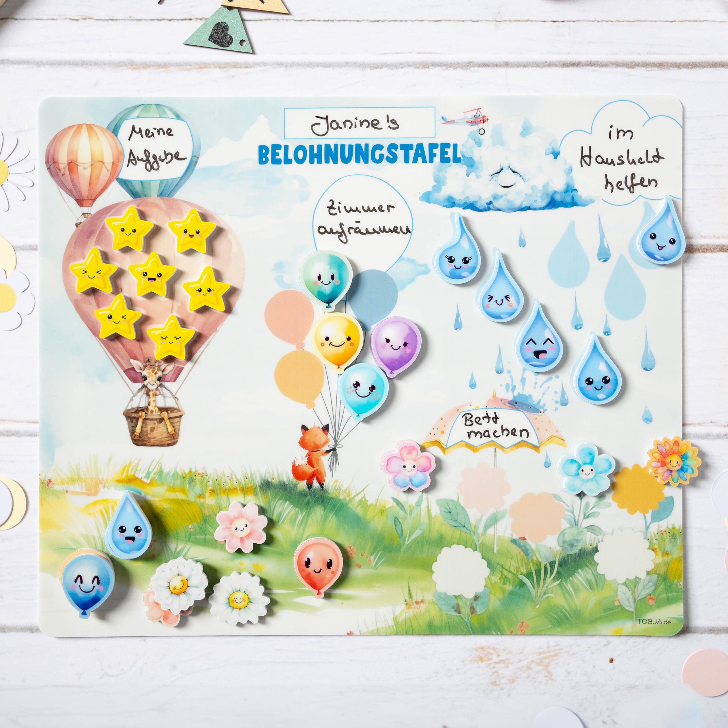 Unser Belohnungstafel-Set ist dafür perfekt! Die liebevoll gestaltete Belohnungstafel und die Zahnputztafel bringen Struktur und Freude in den Alltag.