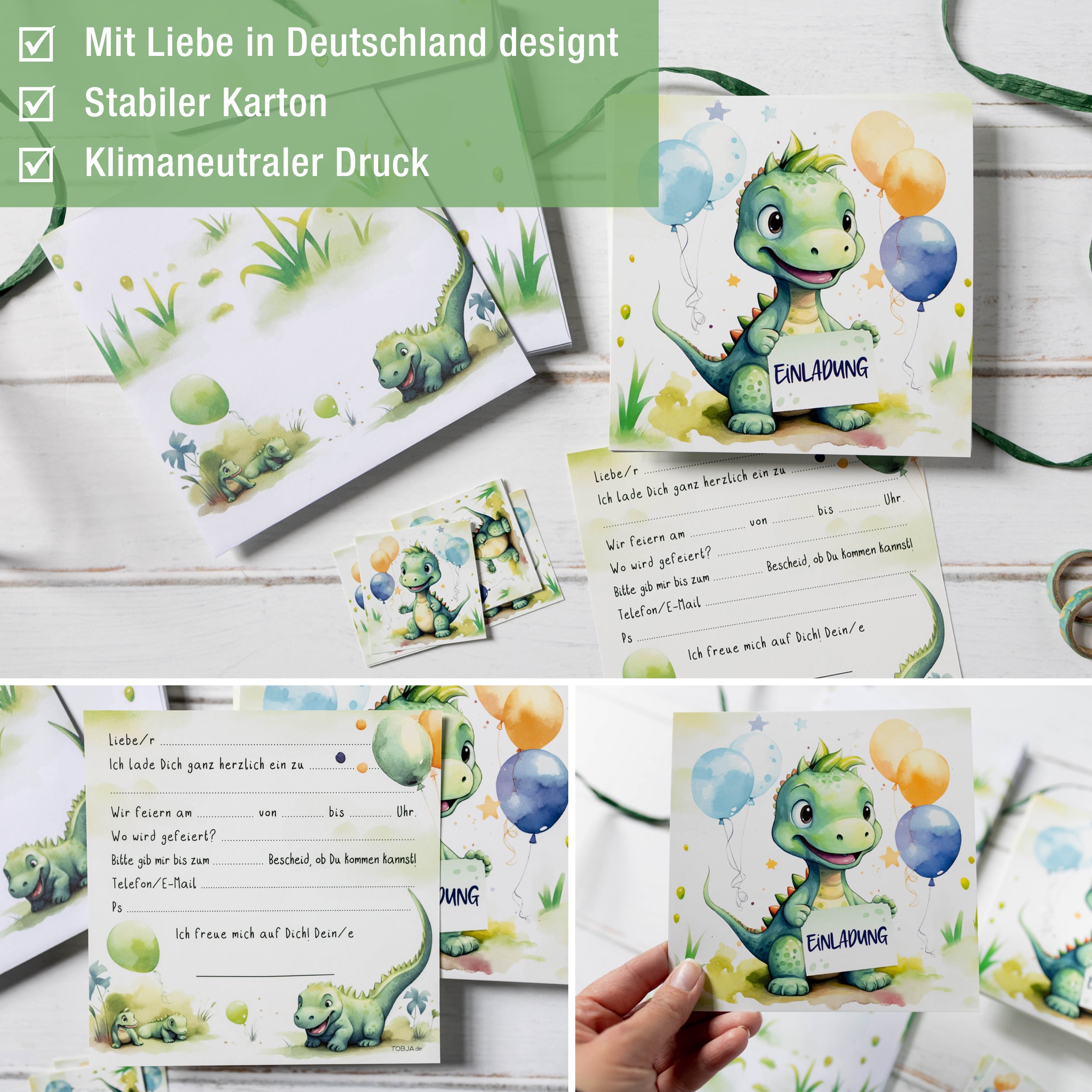 Das Set umfasst 10 Karten, passende Umschläge und coole Dino-Sticker.