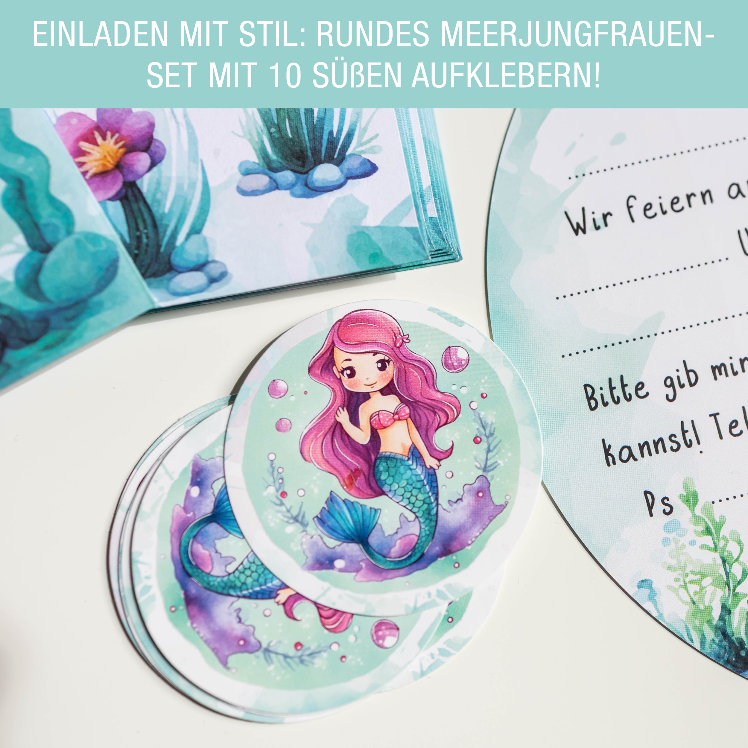 Das Set umfasst 10 wunderschön gestaltete Karten, begleitet von passenden selbstklebenden Umschlägen und bezaubernden Meerjungfrau Stickern. Die vorgefertigten Texte machen das Ausfüllen spielend einfach.