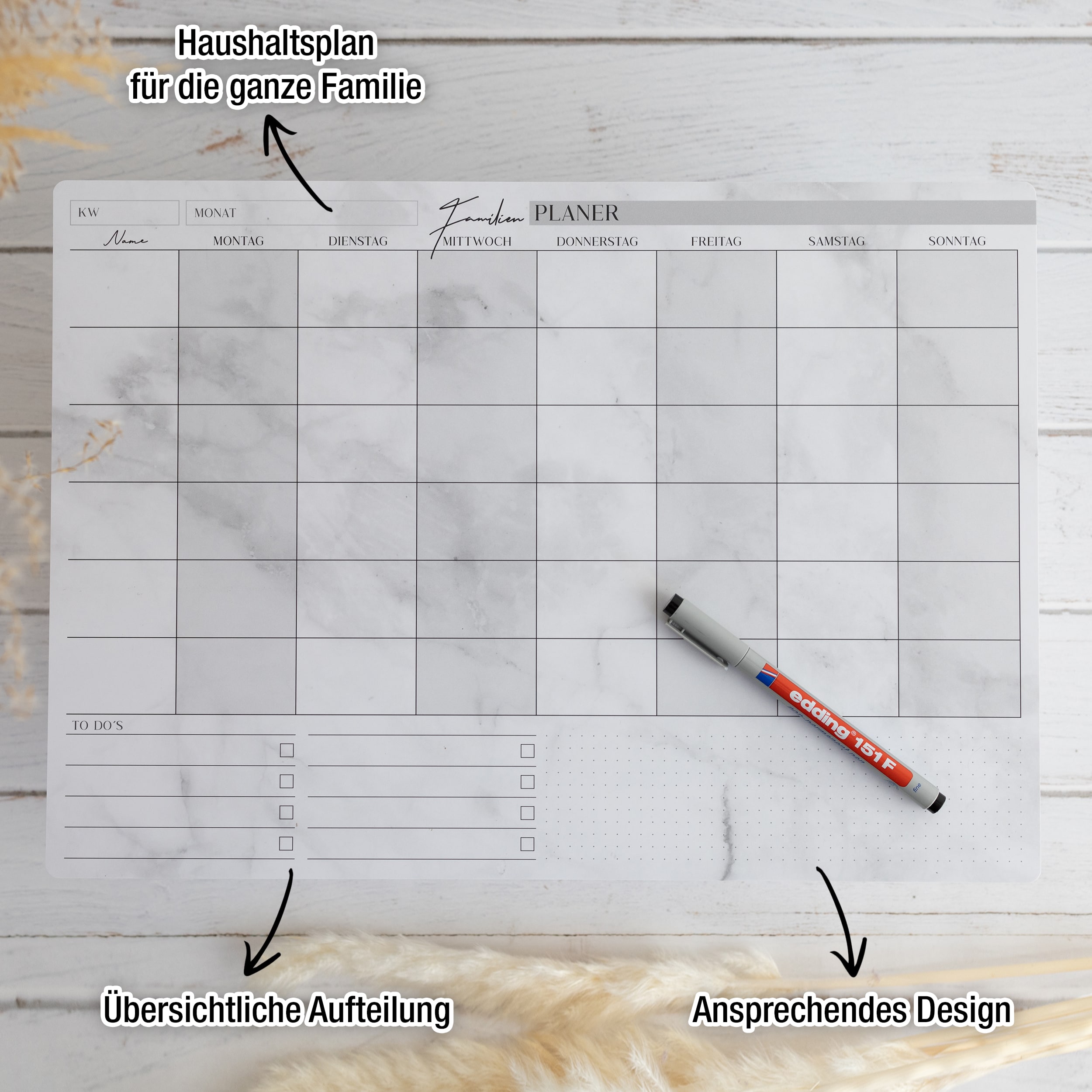 Der Ersatzstift in schwarz ist perfekt für unsere Papierfolien und magnetischen Planer und funktioniert zu 100% auf unseren Oberflächen.