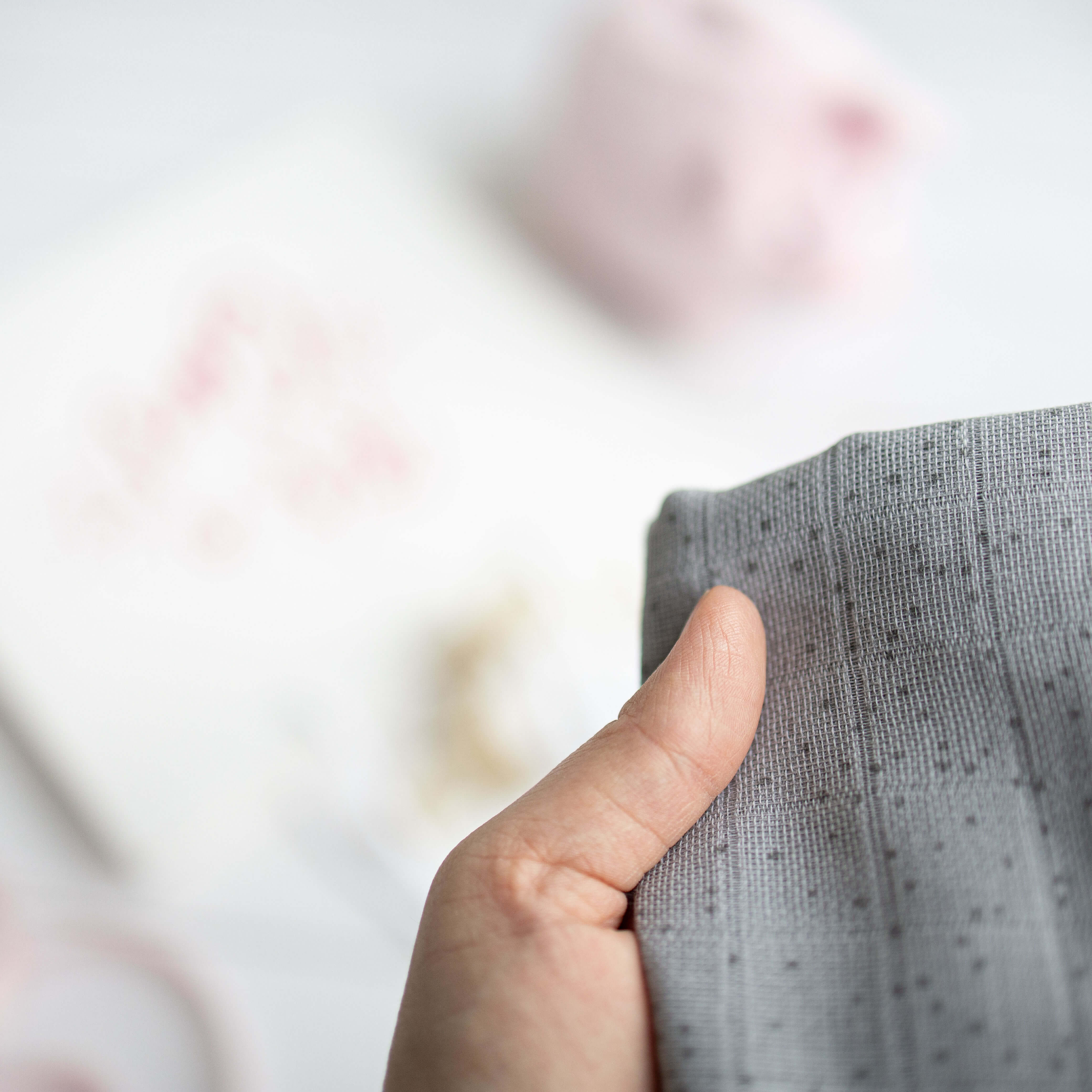 Premium Mulltuch, Mullwindel 100% Baumwolle grau mit mini dots 70x70cm.