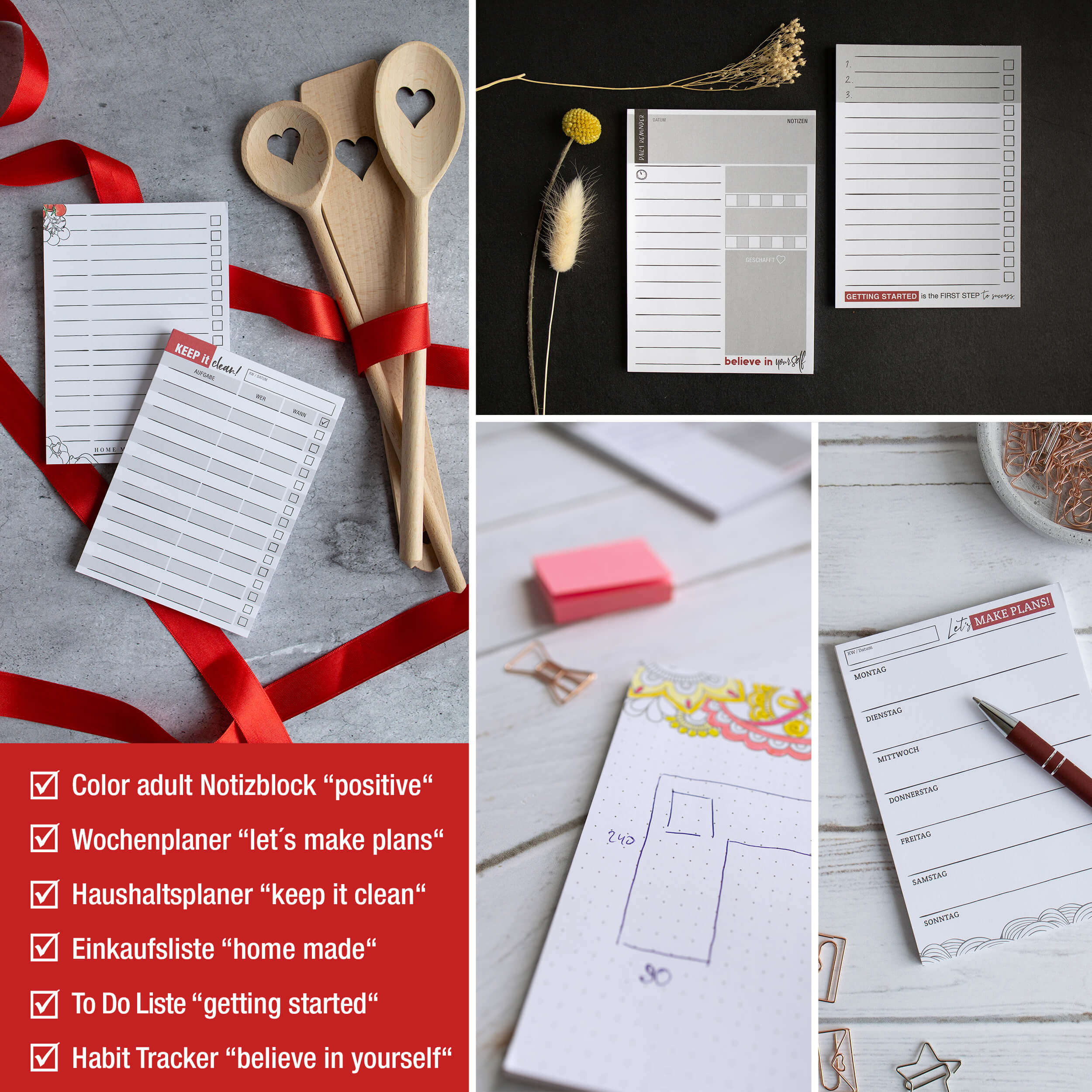 Unsere Notizblöcke im kompakten A6 Format helfen dir dabei Deinen Alltag zu strukturieren und unterstützen Dich dabei eine solche Struktur beizubehalten.