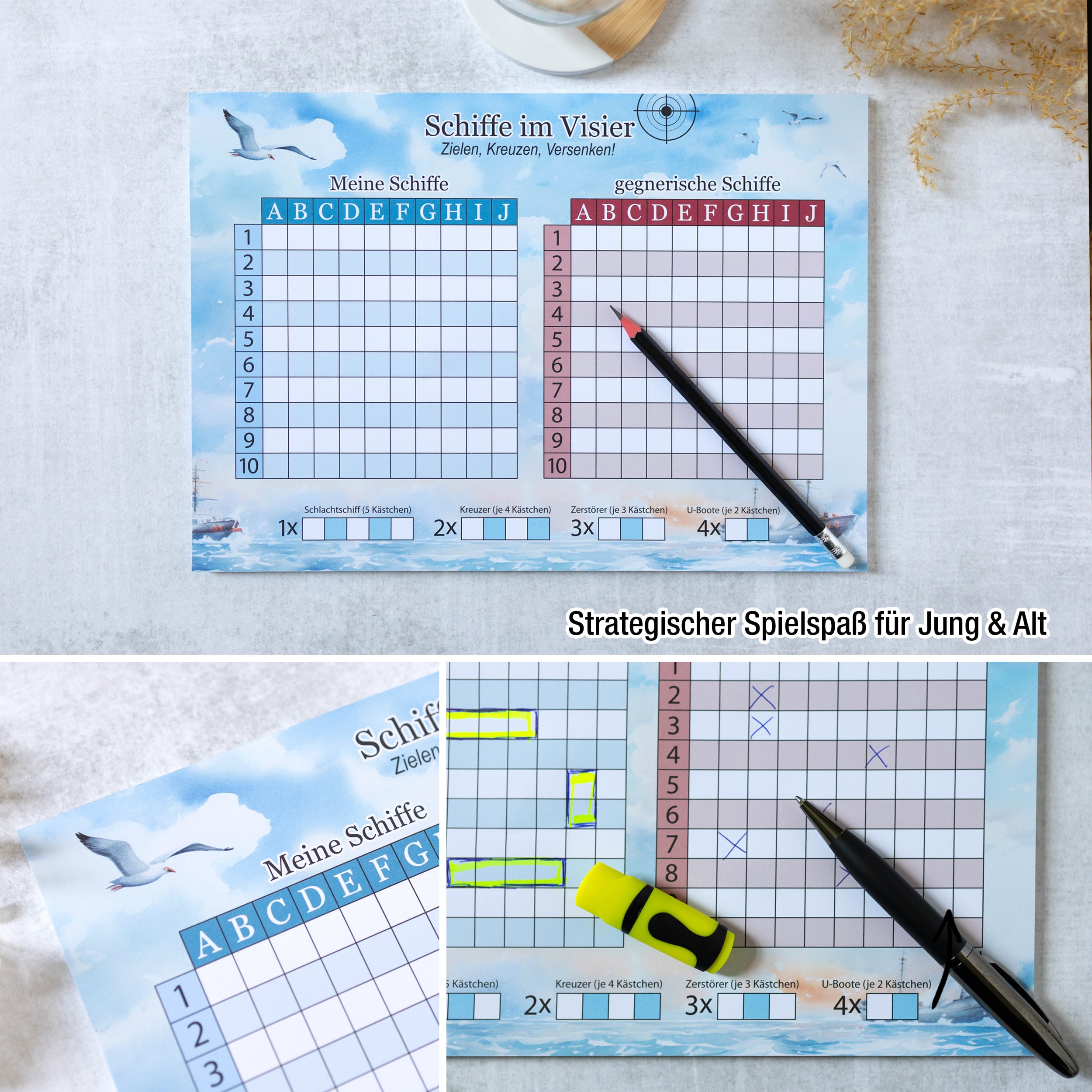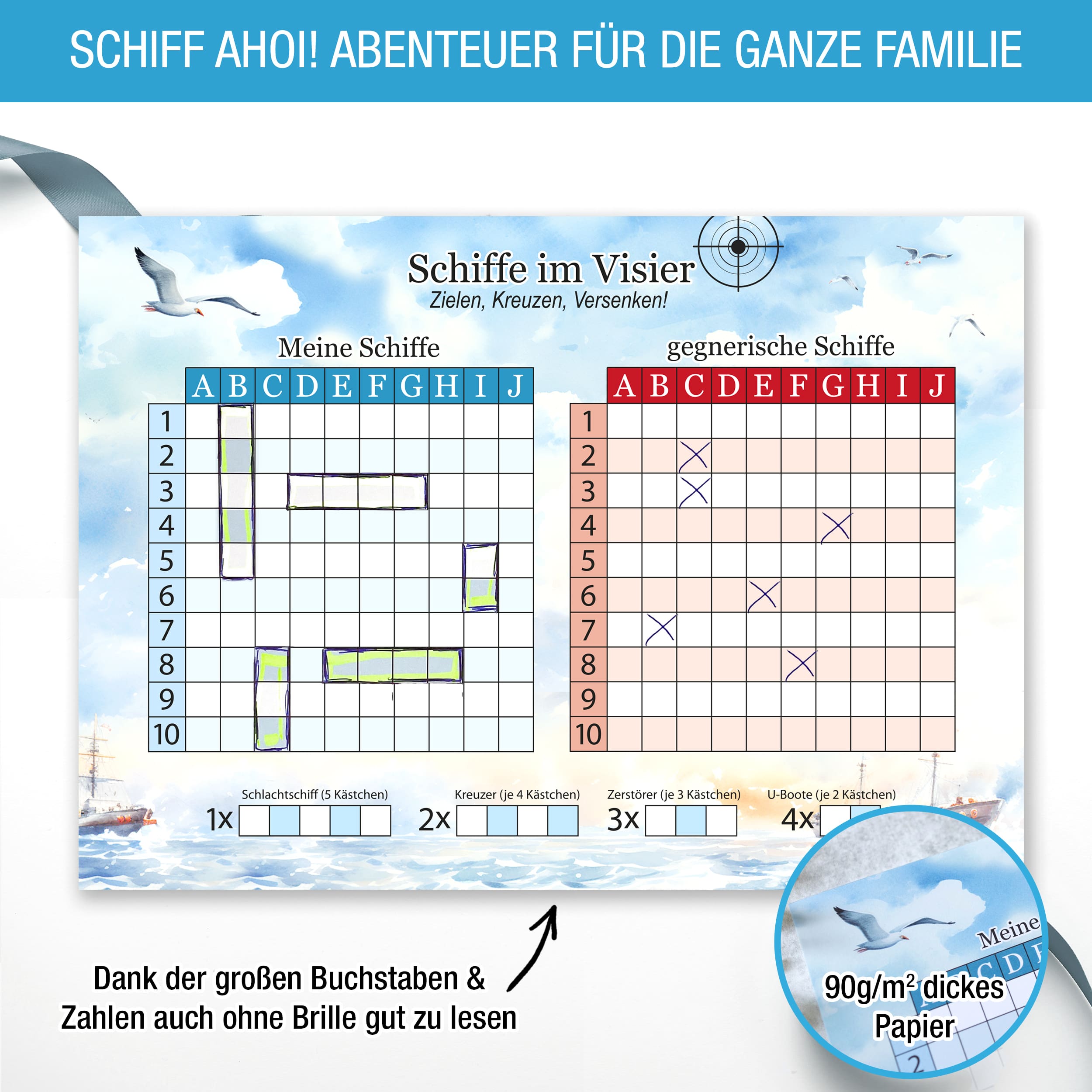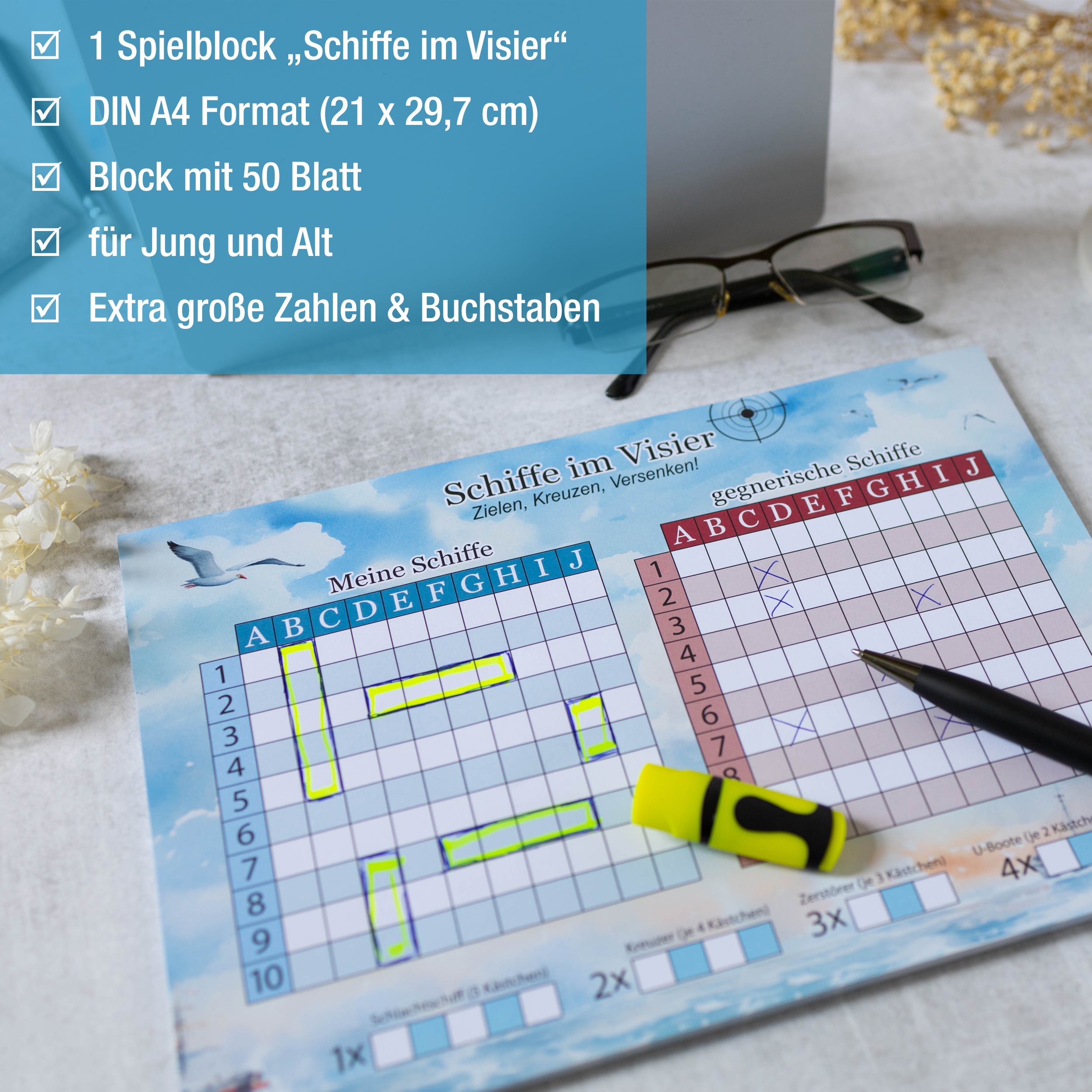 Dann ist unser Schiffe Versenken Block mit 50 Blatt genau das Richtige für dich!