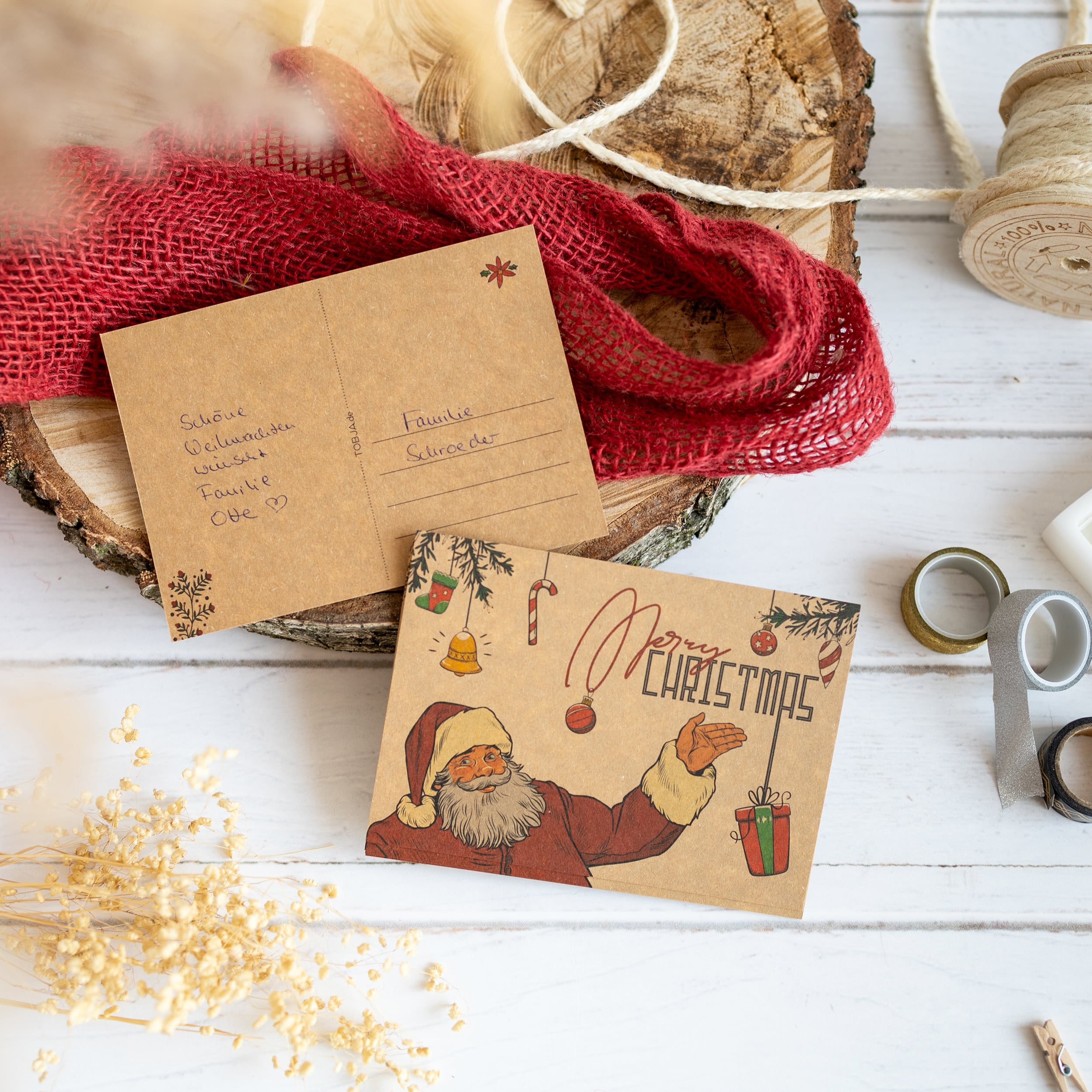 12 Hochwertige Weihnachtspostkarten aus Kraftpapier.