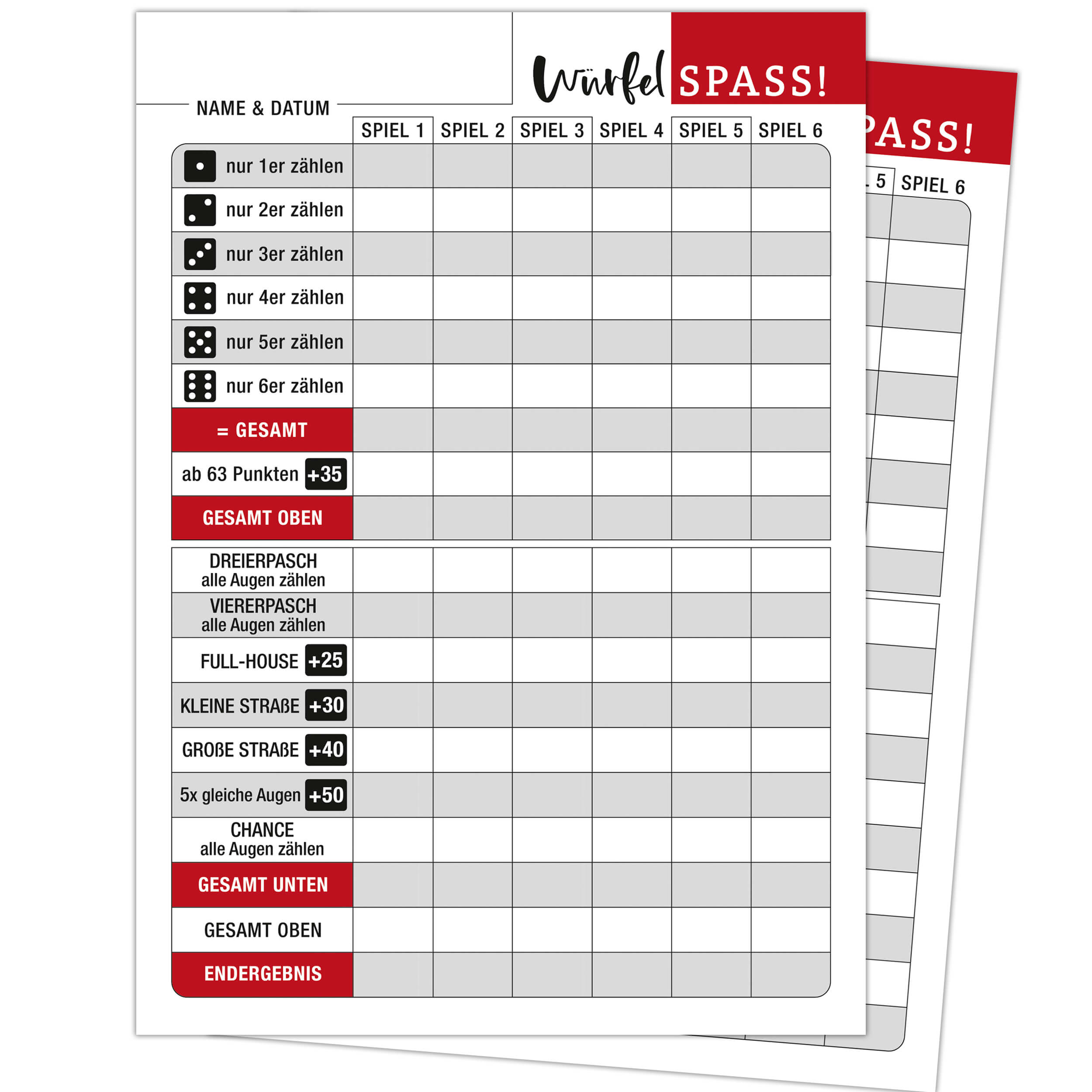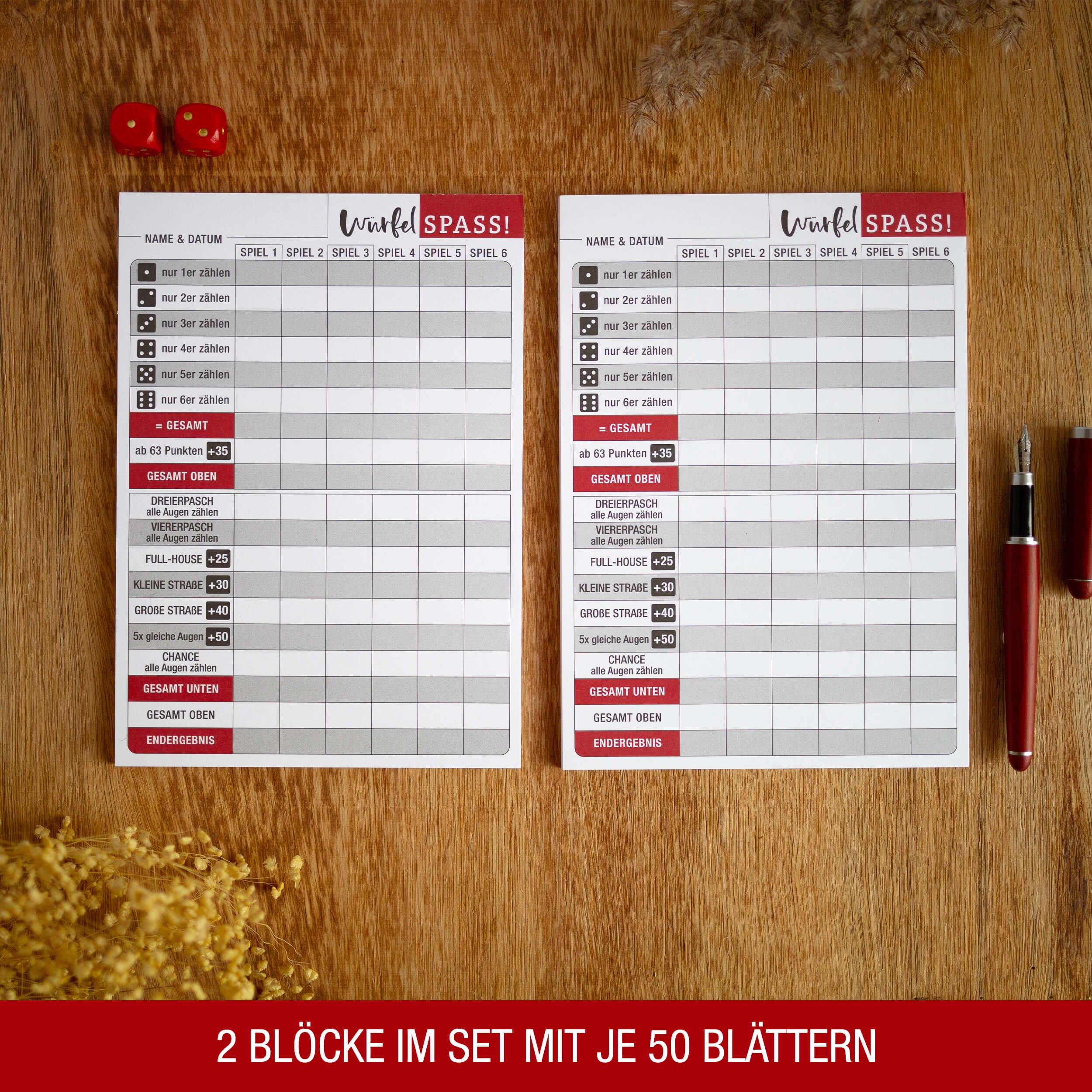 Du erhältst zwei Blöcke mit jeweils 50 Blatt = 600 Spiele