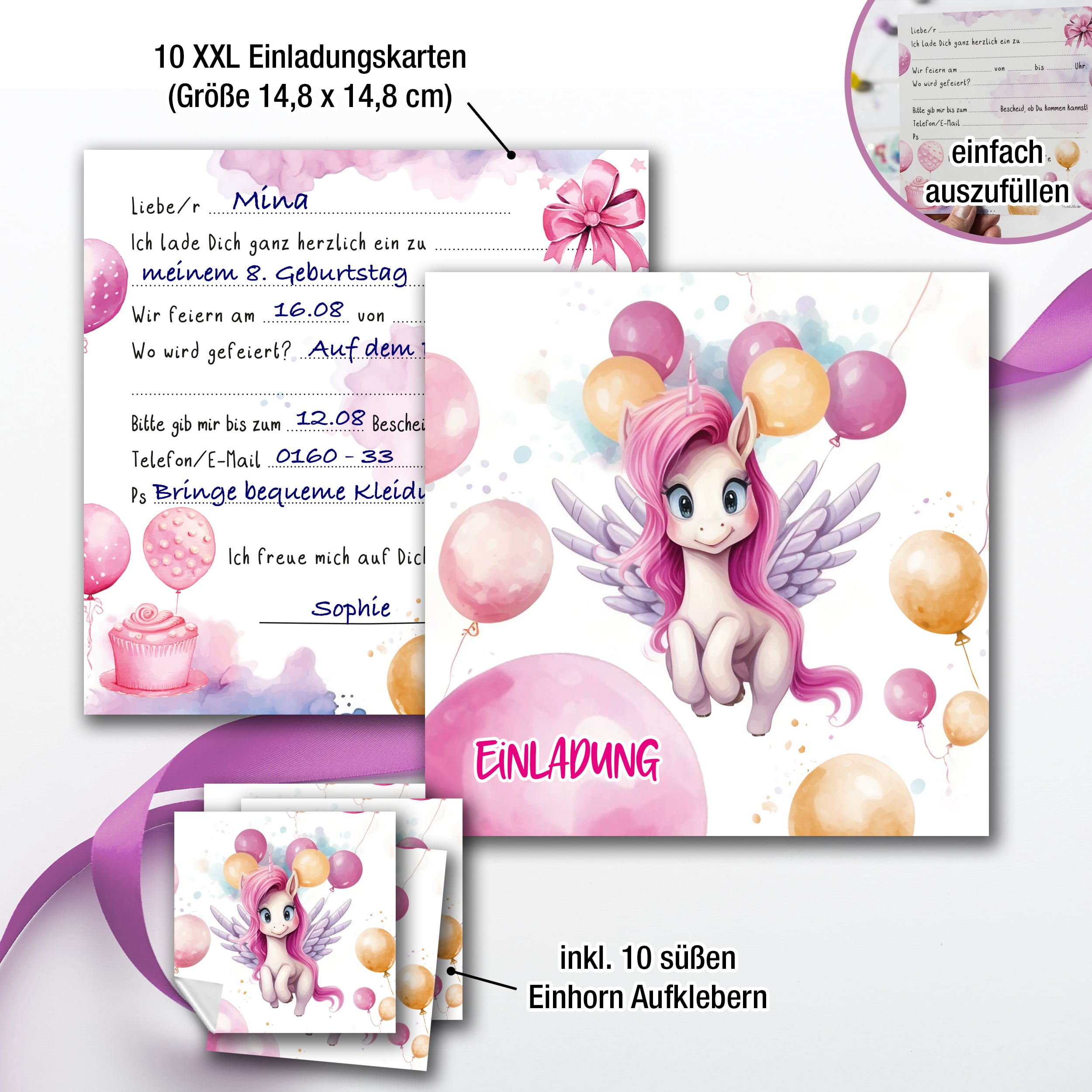 Einhorn-Einladungskarten XXL für Kindergeburtstage - Verzaubere mit Großformat & Stickern!