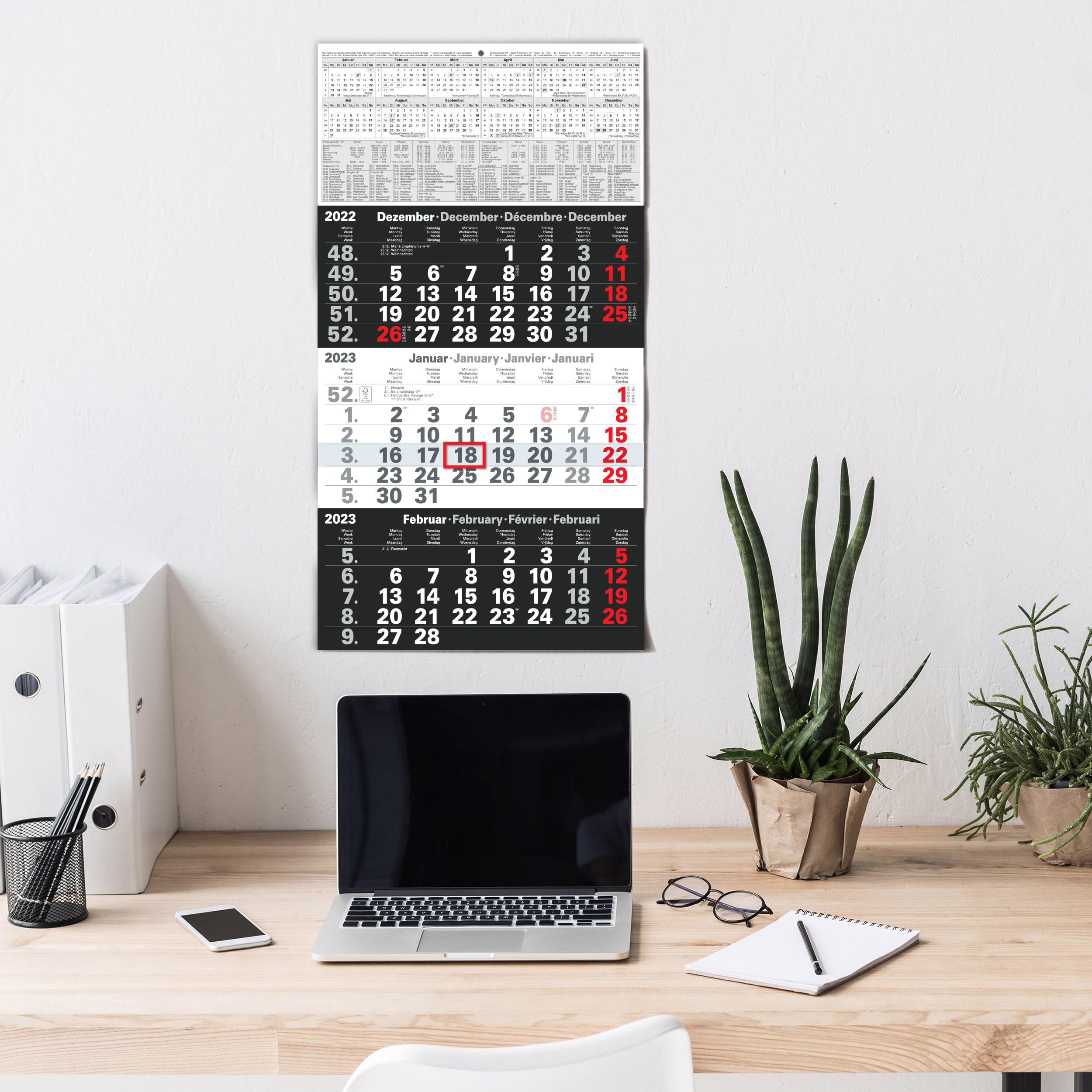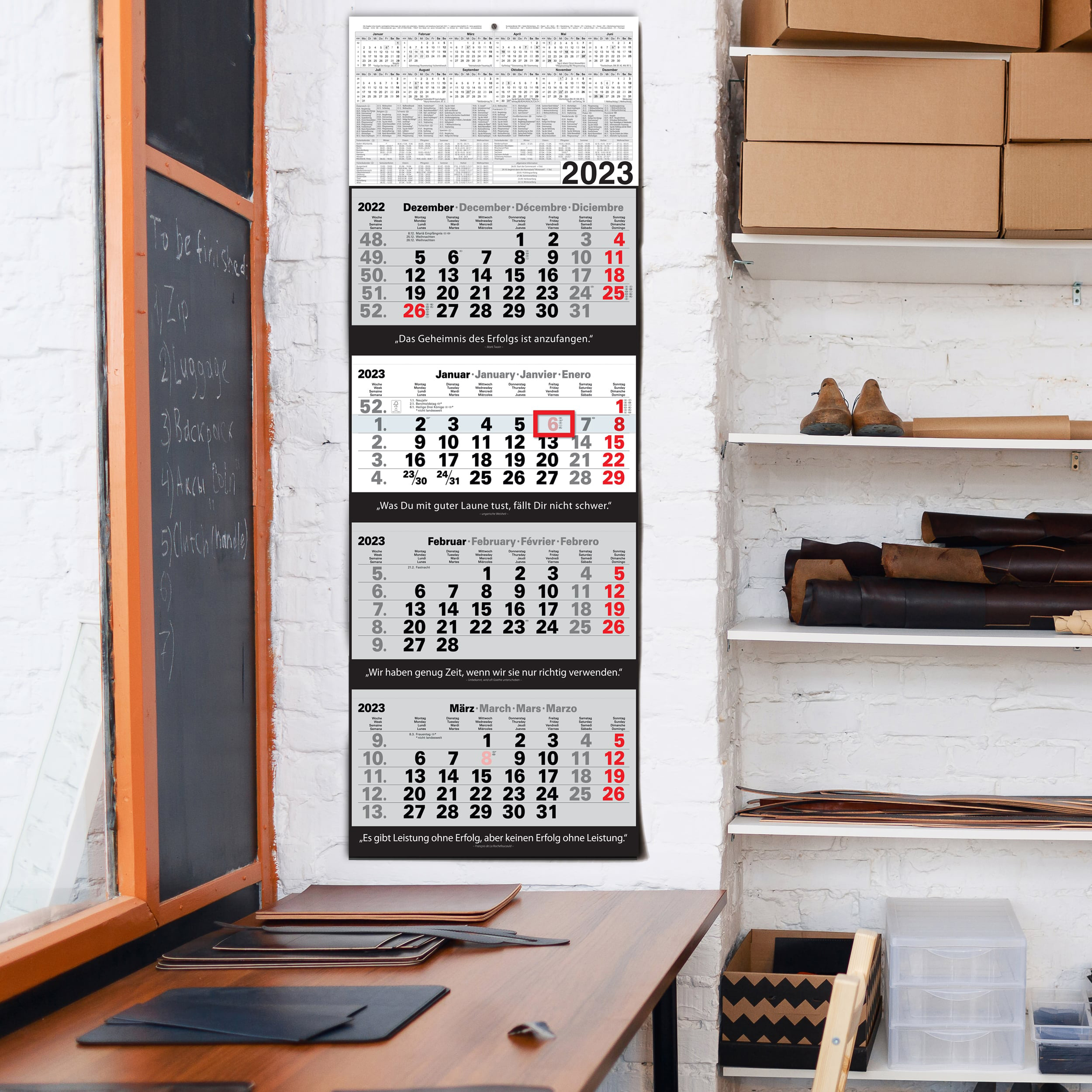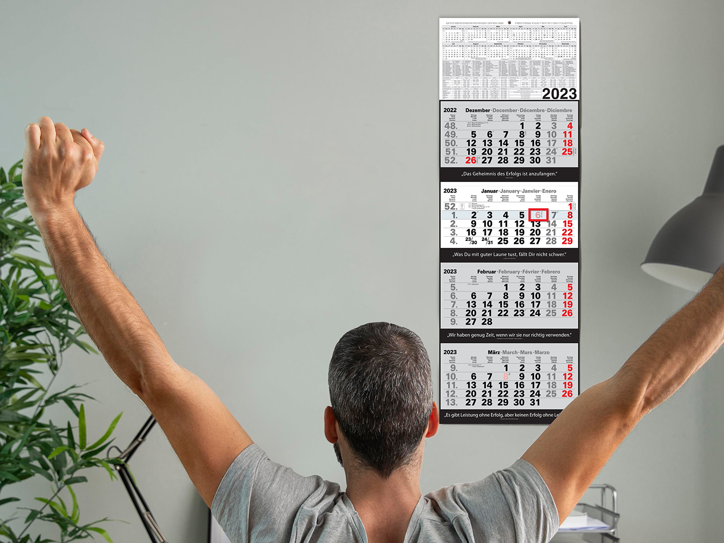 Mit diesem Kalender hängen alle Infos sichtbar an der Wand und durch den Daumenschieber lässt es sich schnell orientieren. Dieser Kalender im schlanken Design hält außerdem für jeden Monat ein motivierendes Zitat bereit.
