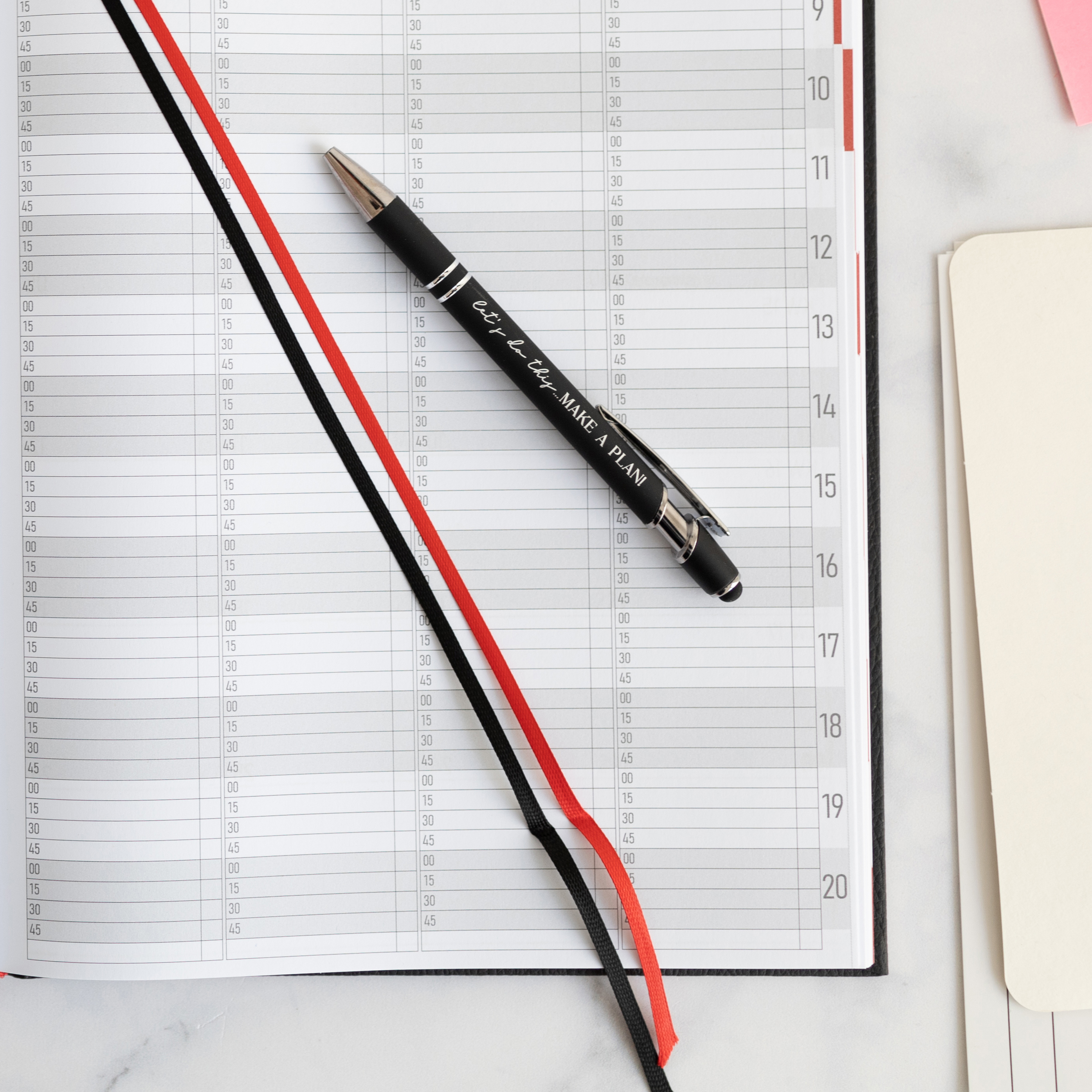 Für Selbstständige, Organisationstalente oder solche, die es werden wollen, ist dieser detaillierte Business Kalender genau das Richtige. Hast du Mitarbeiter und möchtest den Überblick über Urlaubsplanung und Schichteinteilung nicht verlieren? Dann ist dieser Planer im A4-Format perfekt für dich. Durch die 15-Minuten-Taktung und die extra Spalte für Samstage und Sonntage wird präzise Planung zum Kinderspiel. Durch das seitliche Register und die beiden Lesezeichen verlierst du nicht mehr so leicht Orientierung. Und noch einen Pluspunkt hat dieser praktische Planer zu bieten: der Kalender bleibt nämlich offen liegen und klappt sich nicht von selbst zu!