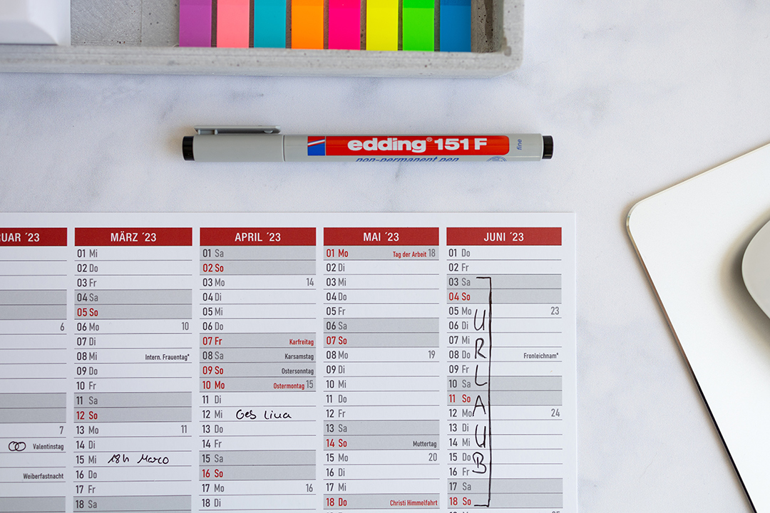 Dieser Kalender lässt sich durch die praktische Öse ganz leicht an der Wand befestigen. Durch den Daumenschieber findest du dich zudem schnell zurecht und verlierst ganz bestimmt nicht mehr so schnell den Überblick.