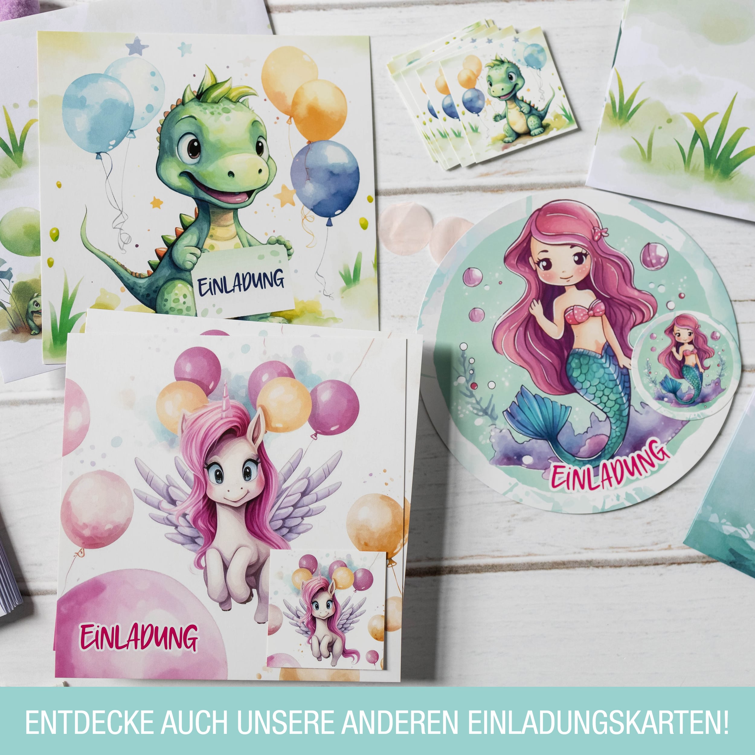 Das Set umfasst 10 wunderschön gestaltete Karten, begleitet von passenden selbstklebenden Umschlägen und bezaubernden Meerjungfrau Stickern. Die vorgefertigten Texte machen das Ausfüllen spielend einfach.