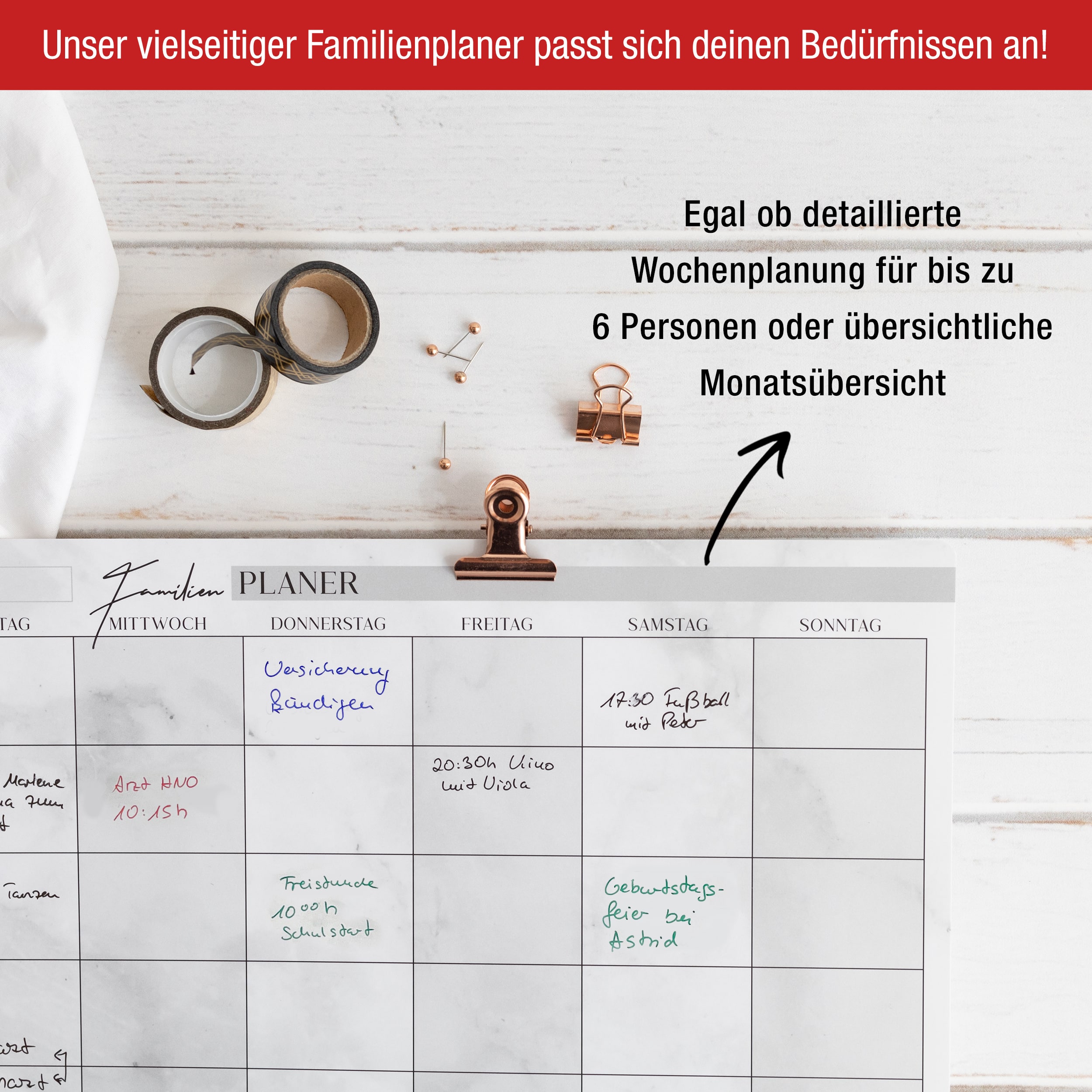 Du organisierter Familienheld, dein Leben wird ab sofort einfacher mit unserem magnetischen Familienplaner DIN A3. Egal ob du dich als Wochenplaner-Guru für bis zu 6 Personen austoben möchtest oder lieber den Monatsplaner-Champion raushängen lässt - dieses geniale Tool hat alles, was du brauchst! Und das Beste daran? Er ist magnetisch und abwischbar, also kannst du ihn immer wieder verwenden und dich von lästigen Papierbergen verabschieden.
