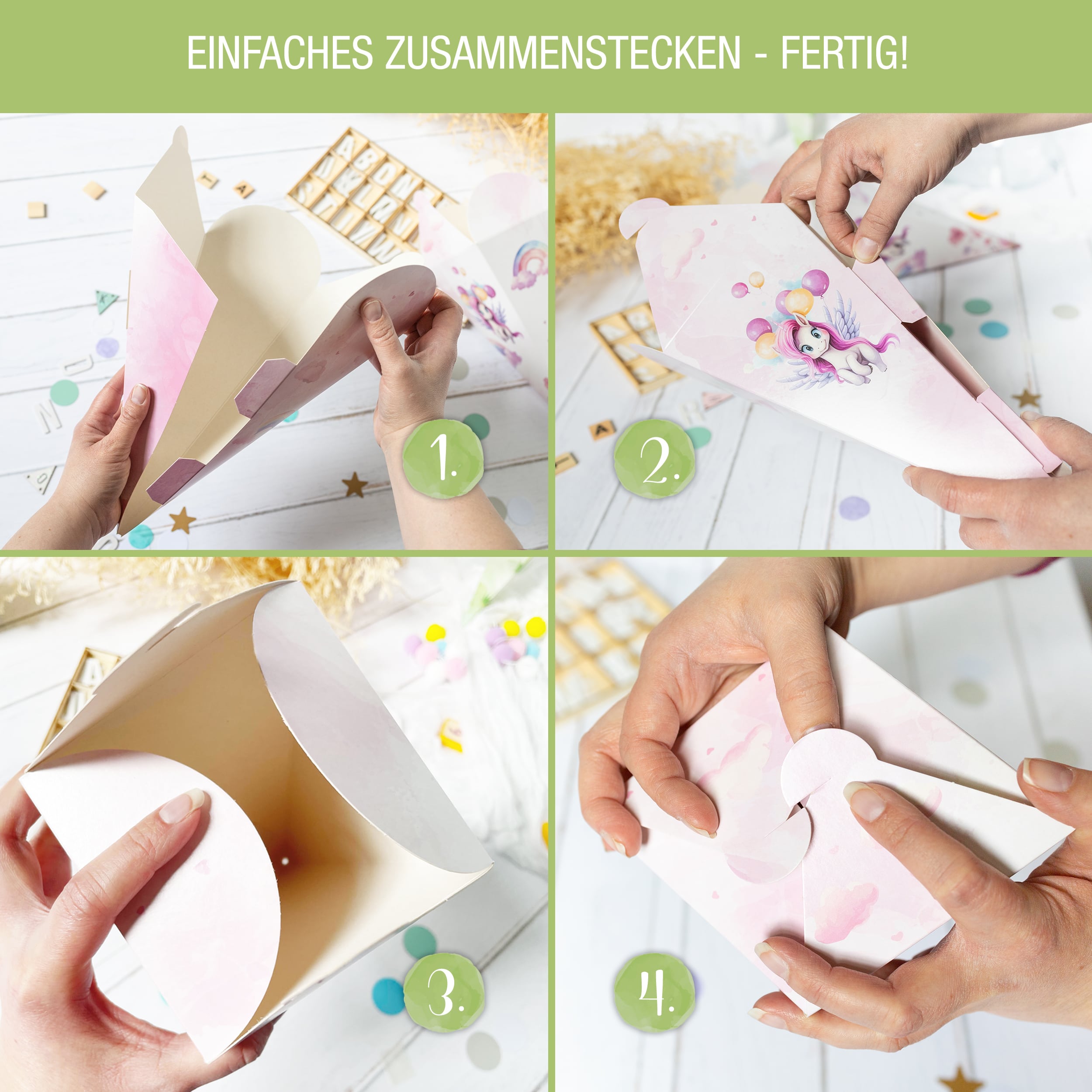 Kein Bastelstress am Morgen der Einschulung – einfach aufklappen, zusammenstecken und mit Freude füllen.