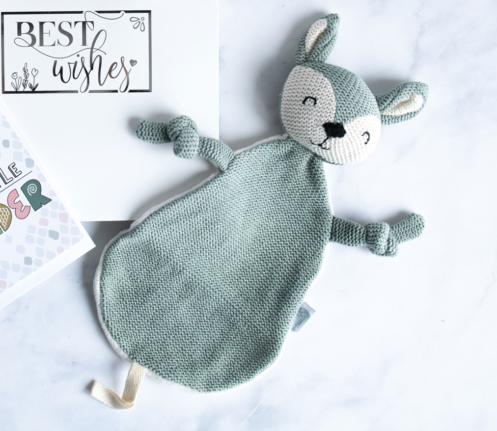 Bei der personalisierten Variante kannst du den Namen des kleinen Schatzes auf dem Tuch verewigen lassen – gib einfach den gewünschten Namen (max. 15 Zeichen) im Kommentarfeld bei der Bestellung an. So schaffst du ein einzigartiges Geschenk, das Herz und Kuschelstunden bereichert.