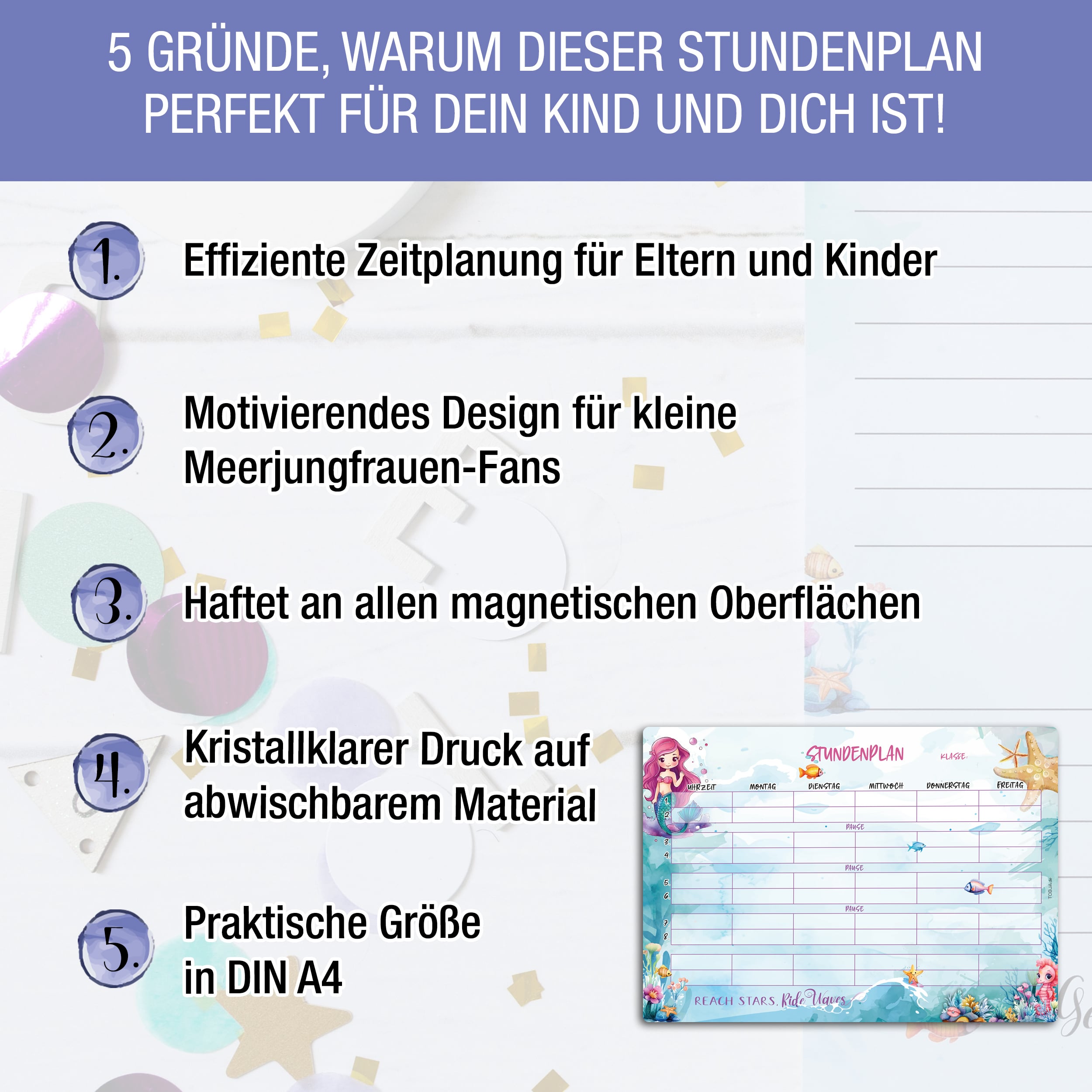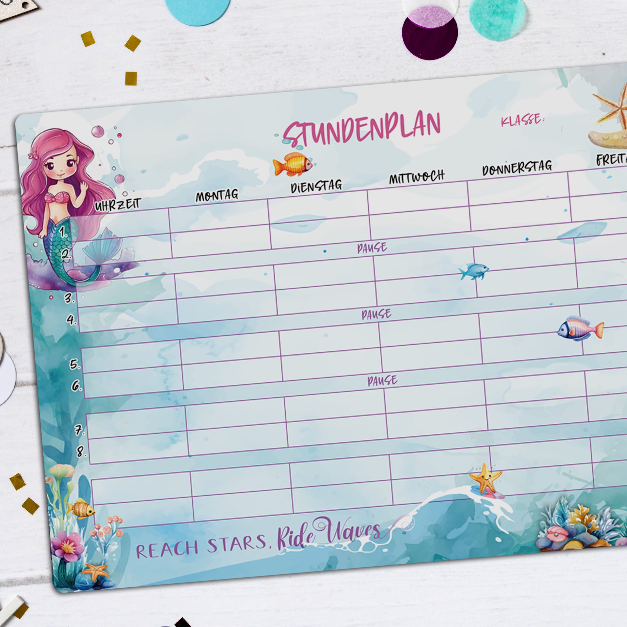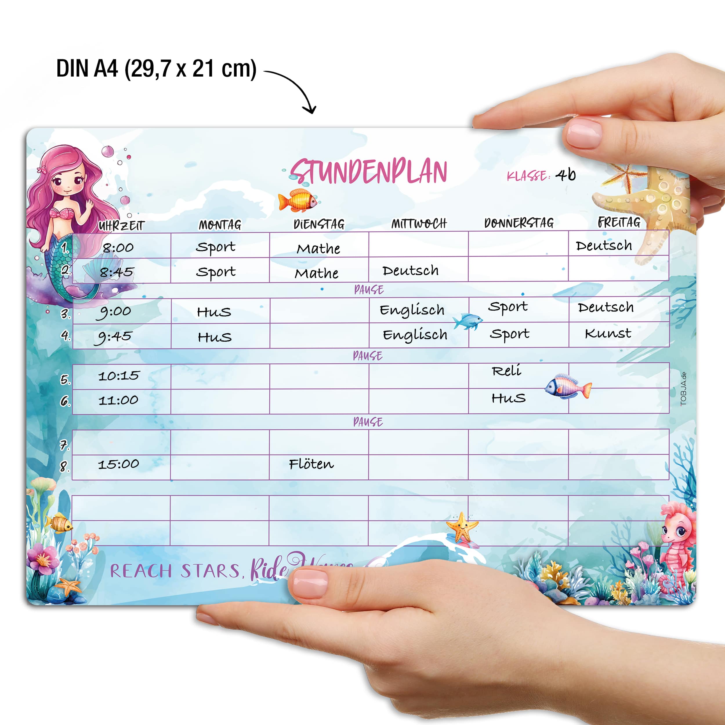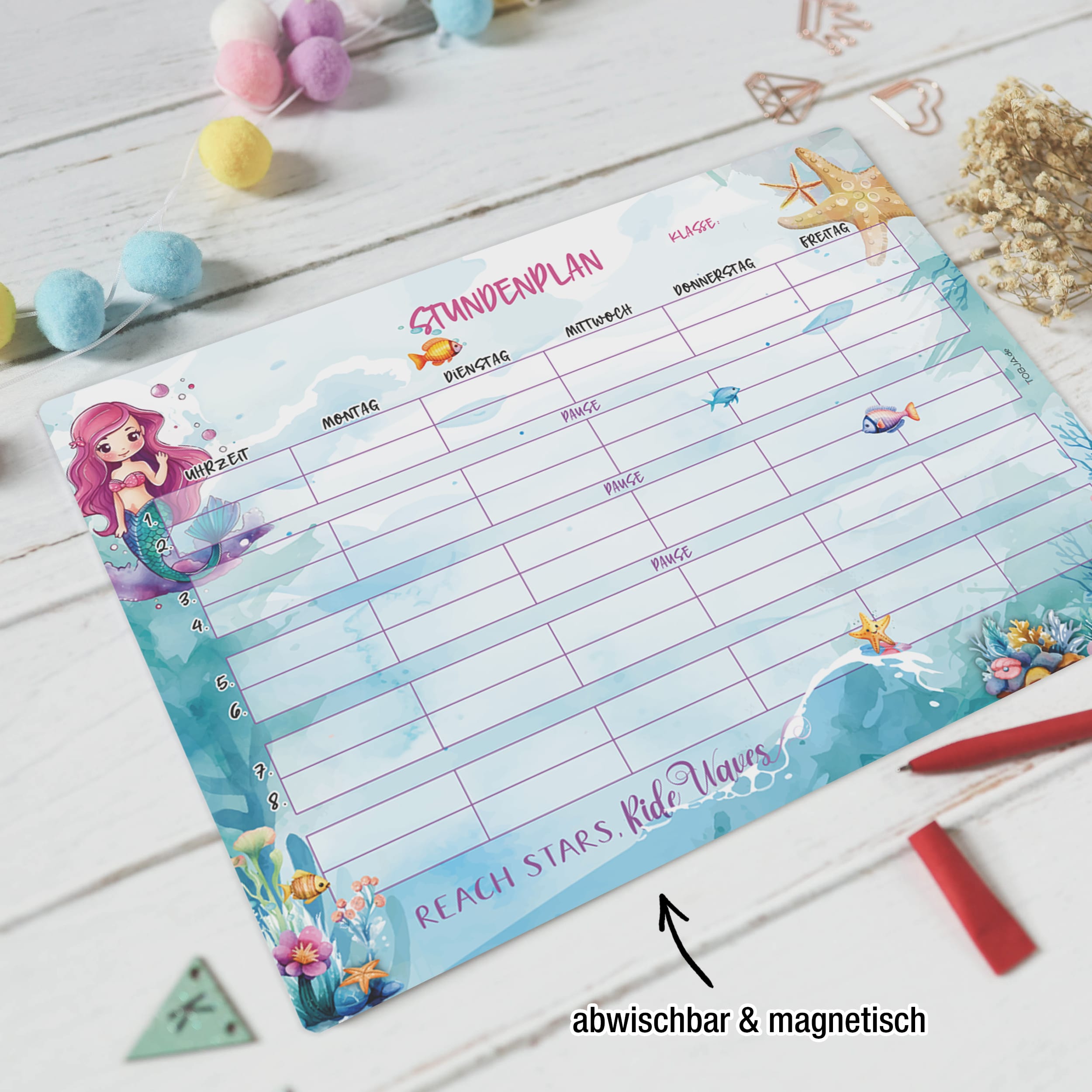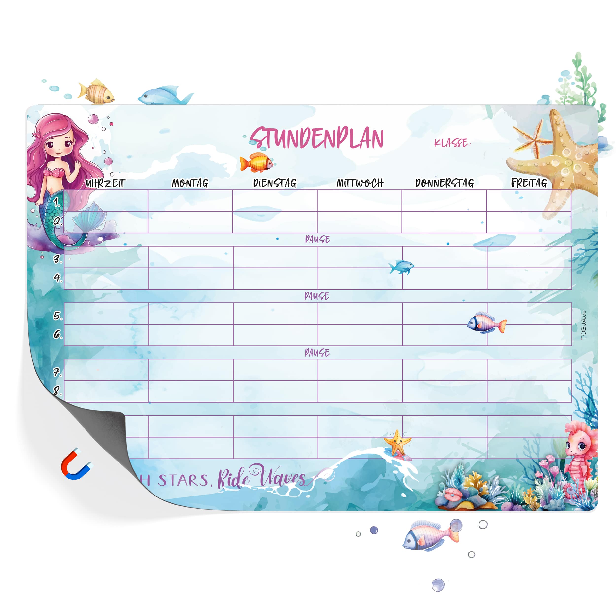 Unser magnetischer DIN A4 Stundenplan mit niedlichem Meerjungfrau Design ist abwischbar und perfekt für Schulanfänger der 1. Klasse.